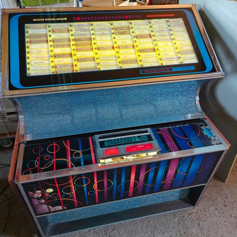 Kuvan jukeboxi, noin 15 vuotta vanha. Ricatech merkkinen. Noin metrin korkea, kokenut jonkin verran kakaroiden käsittelyssä kovia. Työnnetty näyttöä hieman klinkkuun yms pientä, radio vielä ainakin pelaa, cd puolta ei oo hetkeen tullu testattua kun ei oo enää levyjä millä testata. Ei kaukosäädintä tallessa. Hieno koriste tai radio. Valot toimii kuitenkin. Ei pakko myynnissä hinta on toi ota tai jätä! Tinkijöille hinta nousee heti!