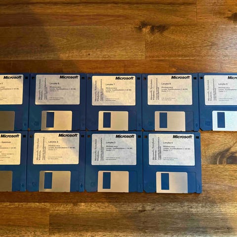 Windows 3.11 asennus 9 levykettä