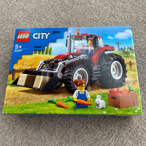 LEGO City Traktori ja kärry leikkisetti sisältää punaisen traktorin ja kärryn, mukana hahmoja ja maatilateemaisia elementtejä. Sopii yli 4-vuotiaille lapsille.