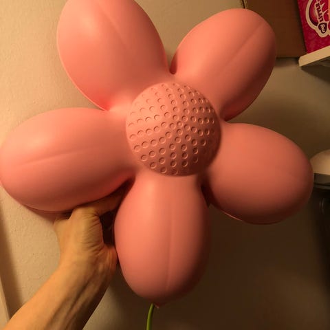 Lamppu lastenhuoneeseen, pinkki röyhelö kuvun päällä, kuvun halkasija 25 cm. Ollut käytössä vain vähän aikaa. Nouto 2,5 km Haukiputaan keskustasta.