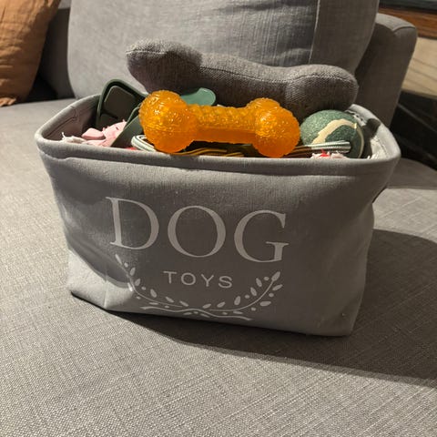 Käyttämätön kuminen koiranlelu. Lelun pituus on 14 cm.