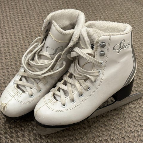 Spin-merkkiset lasten luistimet, koko 32, valkoinen väri. Käytetty mutta vielä käyttökelpoiset seuraavalle luistelijalle.