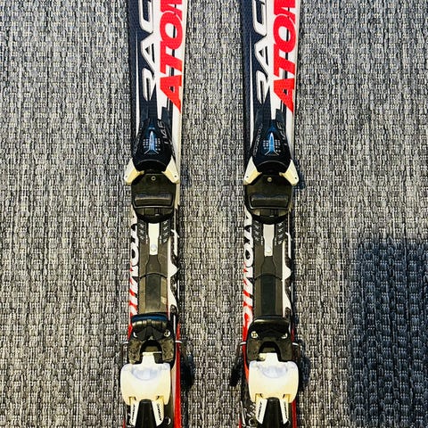 Atomic Race laskettelusukset, pituus 90cm. Hyvin toimivat sukset, pohjissa kulumaa.