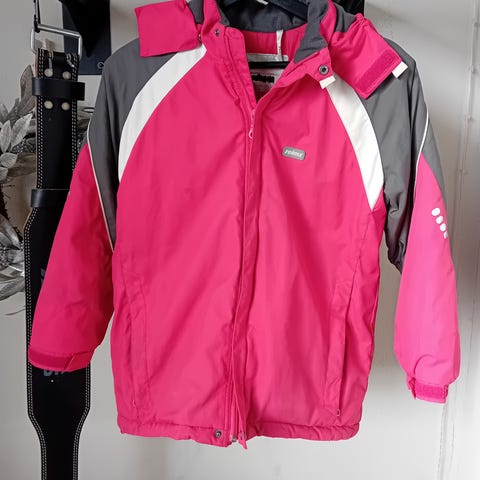 Reiman kaunis ja lämmin viininpunainen talvitakki. Koko 134. Ihana karvahuppu suojaa kasvoja. Takaa heijastin hieman kulunut, oikeassa kauluksessa puremajälkeä. Nouto Paloheinästä.