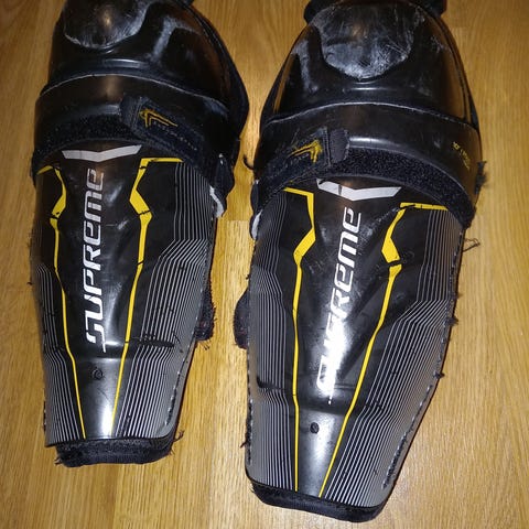 Supreme prp polvisuojat 10"/25cm/XL. Käytetyt ja edestä maalia lähtenyt, muuten hyväkunoiset, myös kiinnitysremmit ja sisäpuoli.