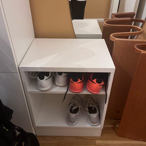 Muuramen kirjoituspöytälevyn tukihyllyksi tarkoitettu hylly. Pieni halkeama päällislevyssä sekä muutama kulumisen merkki. Hyllyssä on sokkeli. Myydään pois muuton tieltä. Haku Espoosta.