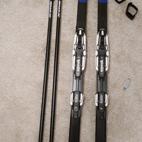 Varusteiden kunto kohtalainen. Sukset vaativat voitelun. Monoissa tarranauhat kuluneet. Kaupan päälle saa halutessaan Excelin vanhemmat sauvat (160 cm), joista toinen rannehihna vaatii vaihdon.