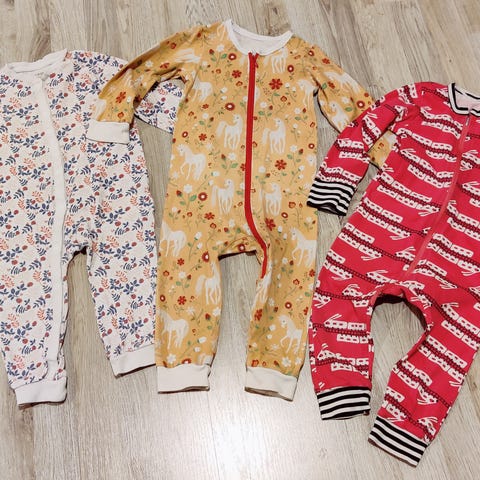 Pitkähihaisia pyjamia. Ihan siistejä. Pipsa possu -pyjaman takaosassa pieni/pieniä tahroja.