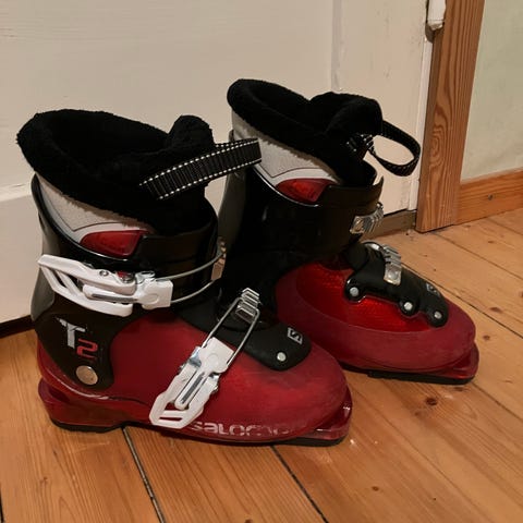 Myydään Salomonin lasten laskettelumonot koko 19/19.5. Vastaa suunnilleen kengän kokoa 31.