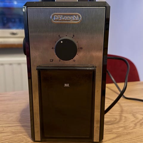 Myydään siisti ja toimiva Delonghi kahvimylly. Helppo käyttää, karkeutta voidaan säätää vasemmalta ja jauhettavaa määrää edestä. Jauhesäiliössä pientä kulumaa, mutta kaikki toimii moitteetta.