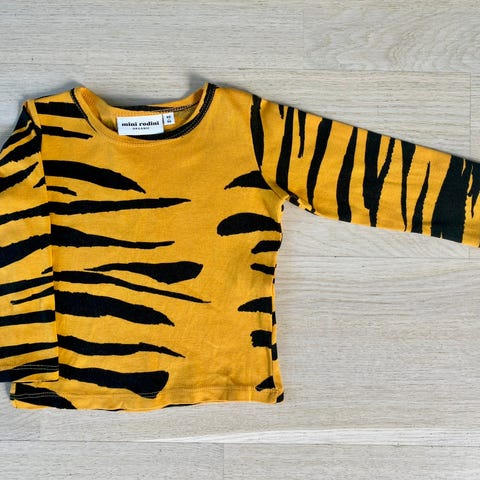 Kuvan Mini Rodini tiikeri t-paita kokoa 80/86. Ihana ja tykätty paita! Edessä jotain tahraa kts. viimeinen kuva, en ole yrittänyt tahranpoistoa.