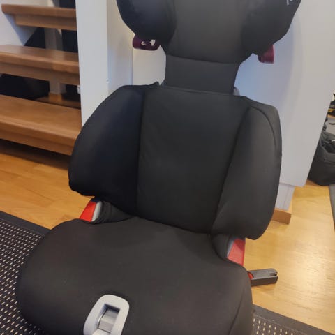 2. autossa satunnaisessa käytössä ollut turvaistuin. Kun ei ole ollut käytössä, niin säilytetty lämpimässä varastossa. Turvaistuin kiinnitetään auton turvavöihin ja siinä istutaan kasvot menosuuntaan. Istuin on kolaroimaton, eli kaikki suojat ja pehmusteet ovat ehjiä. Käytön jälkiä löytyy.