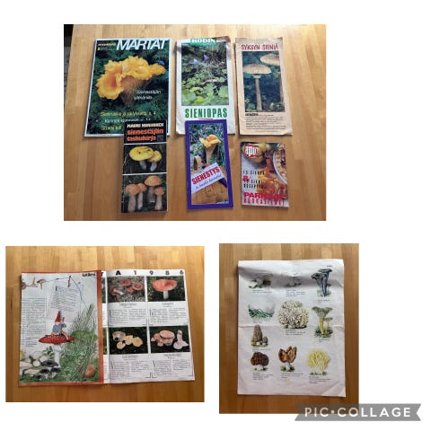 Toivo Rautavaara Sieniaapinen opas sisältää tietoa sienien tunnistuksesta ja käytöstä. Kirja on painettu paperille ja sisältää värillisiä kuvituksia eri sienilajeista yht 40. Vuodelta 1970 ja kuudes painos.
