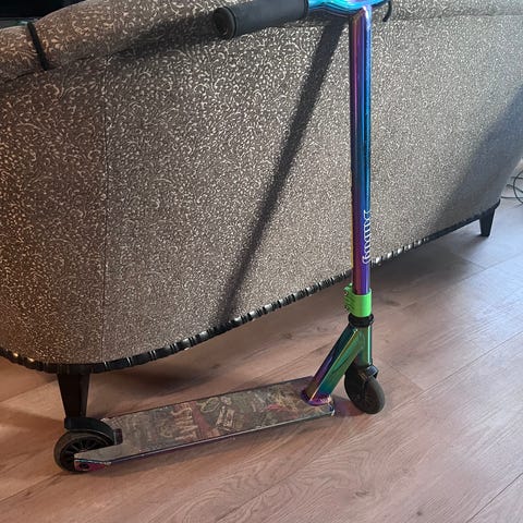 Hyvän kuntoinen skuutti. Kasattu osista pari vuotta sitten, ajettu jonkinverran 2 vuotta sitten. Ei isoja naarmuja ja kaikki toimii niinkuin pitääkin. Grippi ja käsigripit eivät kuluneet melkein yhtään.
