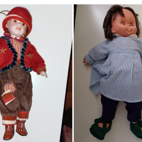 Nukke on 1960-luvulta. Jalat ja kädet liikkuvat, silmäripset lähes pudonneet, muuten kunnossa. Pituus 32 cm. Vaate on uudempi.