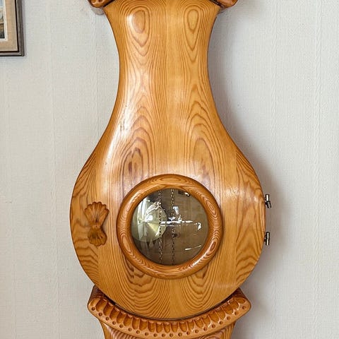 perinteiseen malliin käsityönä koivusta tehty kaappikello saksalainen kone käynti kunnossa