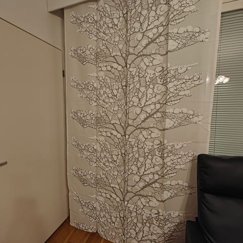Hyväkuntoinen, siisti ja juuri pesty verhopari Vallilan Lumi Classic. Koko 140x240cm. Tankokuja. Yht 40€.
