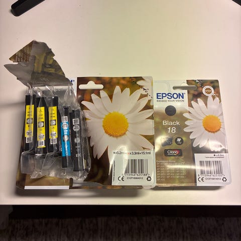 Riittoisat mustekasetit epson tulostimeen. Yksi pakkaus avattu ja huomattu ettei sovi omaan tulostimeen.