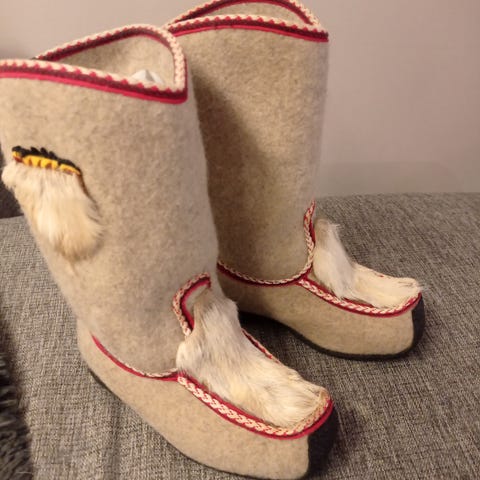 Näillä pärjää kovemmassakin pakkasessa; ei ole kylmää kumipohjaakaan. Erittäin hyvälaatuiset suomalaiset huopasaappaat, jotka kestäneet meillä äidiltä tyttärelle ja nyt jääneet pieneksi. Vanhaa kunnon napakkaa huopaa. Kokomerkintää ei ole, mutta arviolta 36. Ulkomitta noin 25 cm, sisämittaa vähän hankala mitata mutta arviolta 21-22 cm. Saa toki sovittaa ennen ostopäätöstä.