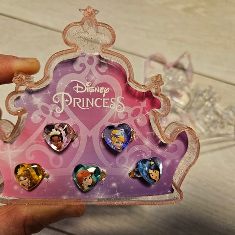 Prinsessa aiheisia koruja. Useampi kaulakoru, rannekoru ja sormuksia. Frozen, Lumikko ja Tuhkimo -aiheisia. Vähän käytetty.