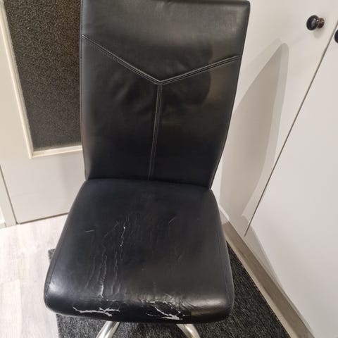 Paljon käytetty, mutta ehjä koulutuoli vielä seuraavalle.