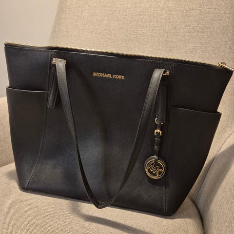 Tyylikäs ja ajaton Michael Kors -olkalaukku etsii uutta omistajaa. Mustaa nahkaa, edessä metallinen MICHAEL KORS -logo. Sisäpuolella vetoketjutasku ja kauniisti kuvioitu vuori. Mukana säädettävä olkahihna.