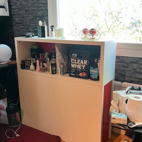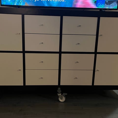 Ikean kaappi, sisällä kolme hyllyä. Hyvä peruskunto, kaapin kansi / ylätason kiinnitys tarkistettava.