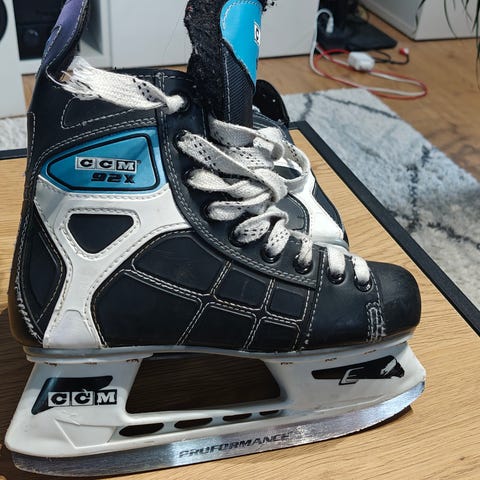 Hyvät luistimet mutta molemmissa luistimissa kulumisen jälkiä. Jos haluat lisää tietoa niin kysy.