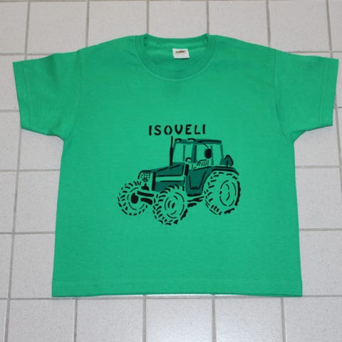Diy ompelijan siististi tekemä tumman sininen traktori paita 104 cm, hyväkuntoinen