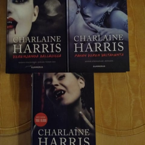 Myydän kuvan kasa Charlaine Harrisin kirjoittamia Sookie Stackhouse pokkarreita. Osat 2-12. Englanninkielisiä
