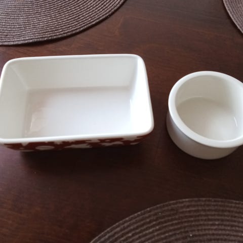 Keramiikkainen neljäosainen tarjoilusetti, sisältää kulhot eri väreissä: keltainen, vihreä, sininen ja musta. Kulhot sopivat erilaisten ruokien tarjoiluun. Hinta koko setti 5€.