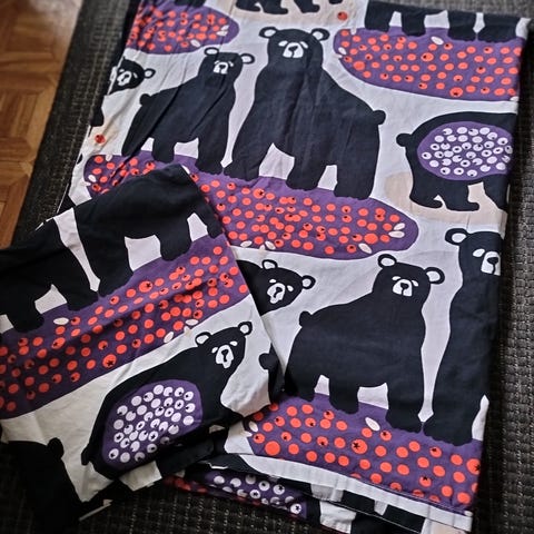 Punainen ja keltainen ovat muumikuoseilla. Punainen koko 80cm ja keltainen 86cm. Käytetty kuitenkin yhteisesti koon 86 kanssa.