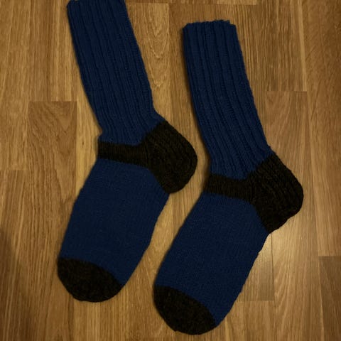 Moniväriset käsin neulotut villasukat, joissa on eri värisiä ja kuvioituja osioita. Sukat sopivat kylmien jalkojen lämmittämiseen ja ovat valmistettu villasta. Koko 37-38