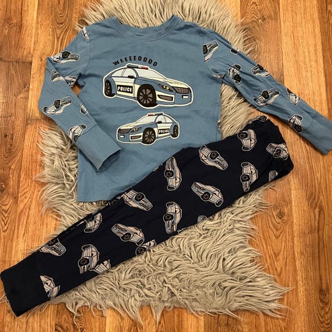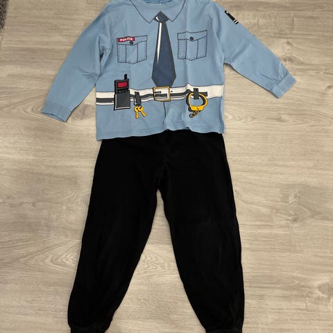 Yhdellä käytetty poliisi yöpuku kokoa 110/116. Kuvat hieman lohkeillut mutta muuten ehjä sekä siisti kunto.