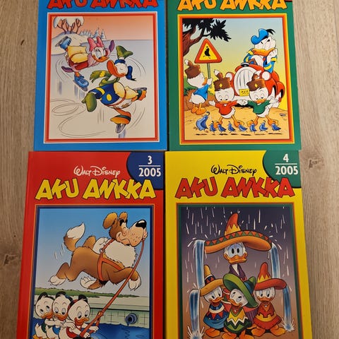 Neljä Aku Ankka -sarjakuvakirjaa vuodelta 2008. Kirjat sisältävät Aku Ankka -lehden vuosikerran 2008. Uudet lukemattomat.