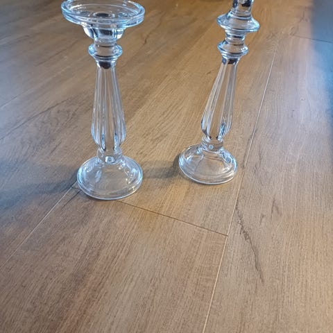 Lasiset kynttilänjalat, joissa toisella puolella upotus kruunukynttilöille