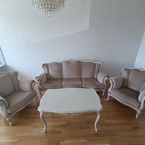Todella hieno rokokoo sohvaryhmä:sohvasänky, 2 tuolit sekä pöytä. Siisti ja hyvässä kunnnossa.