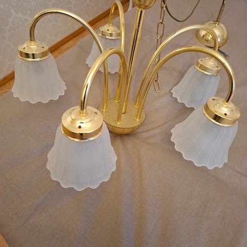 Messinkinen kattovalaisin, ehjä ja kaunis. Kuvut lasia.