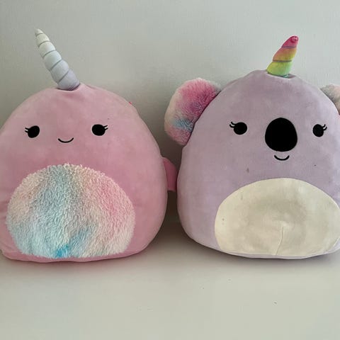 Myydään kuvan pehmot, yksi isompi kuin muut. Suurimmassa osassa on pahvilaput kiinni (näkee hahmon nimen).