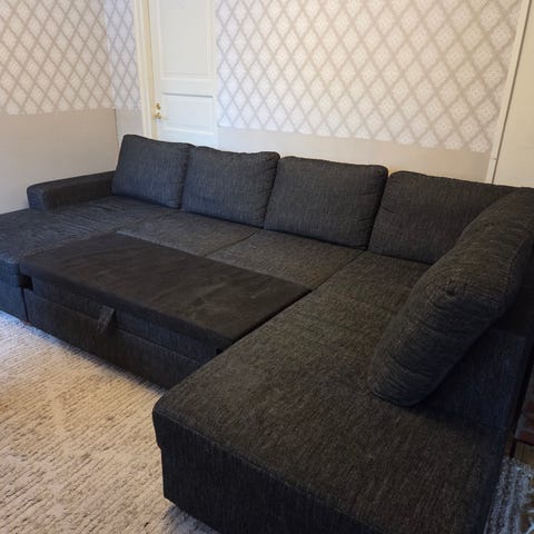 Levitettynä sohvan rungossa on pieni rako, joka on tullut käytön seurauksena (näkyy viimeisessä kuvassa). Ei haittaa nukkumista. Muutoin erinomaisessa kunnossa.