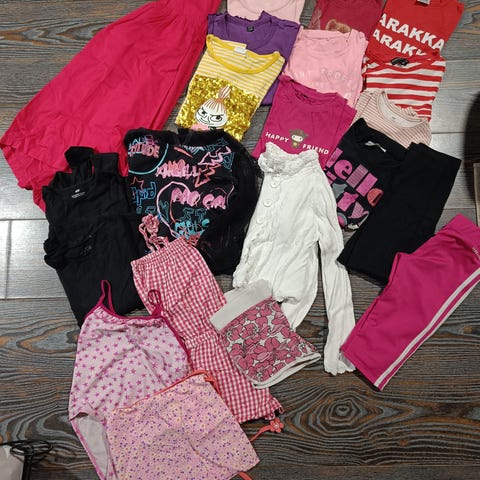 Kuvien vaatteet 10e, kokomerkinnät vaatteissa 122 / 128.