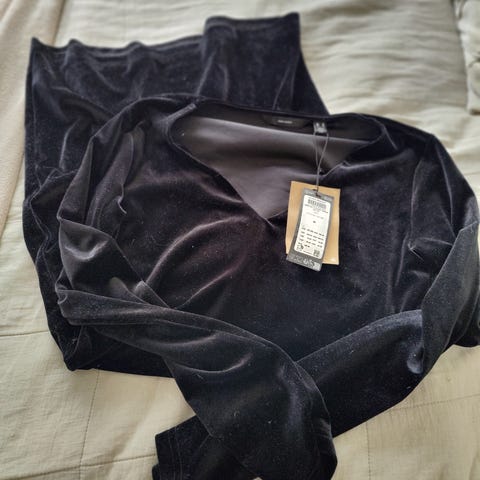 House of Lolan musta samettinen pusero koossa M. Ei taskuja. 93% polyesteria, 7% elastaania.
