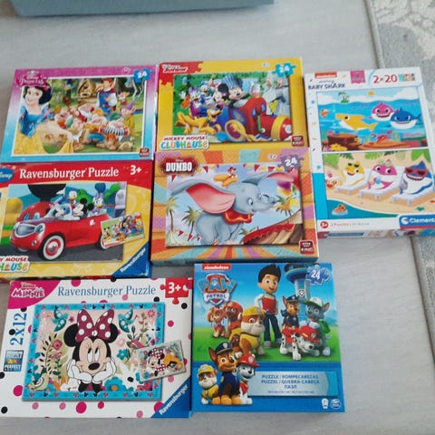 Myynnissä kuvien +5 & +6 ikäisten palapelit.