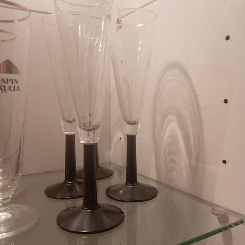 Myydään 6 kpl shampanjalaseja sekä 6 kpl liköörilaseja. Myydään vain settinä. Hinta 10€. Pääasiassa nouto, mutta kulkeutuvat tarvittaessa Raisioon tai Naantaliin myyjän aikataulujen mukaan.