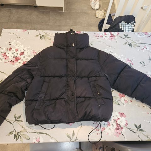 Hupullinen toppatakki. Hupun karvareuna on vetoketjulla kiinni jonka saa poistettua. 4 taskua joista 2 vetokeljulla suljettavissa.