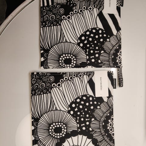 Marimekon pieni siirtolapuutarha patalappu ja Uunikinnas. Molemmat uusia ja laput kiinni. Myydään yhteishintaan 30 e.