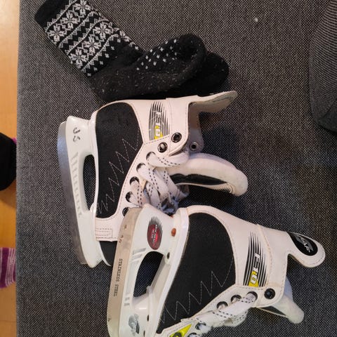 Lasten luistimet hyvässä kunnossa. Säädettävä koko 26-29.