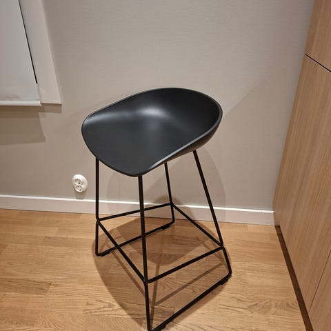 Hay metallirunkoinen tuoli, jossa on vaaleansininen viimeistely. Tuolissa on moderni ja minimalistinen muotoilu, joka sopii erilaisiin sisustustyyleihin, sisälle ja ulos. Jäänyt käyttämättä joten kuin uusi.