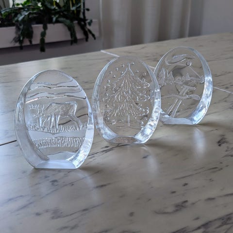 Alkuperäiset Iittala-tarrat ja signeeraukset. Kolme erilaista mallia. Ei lohkeamia.