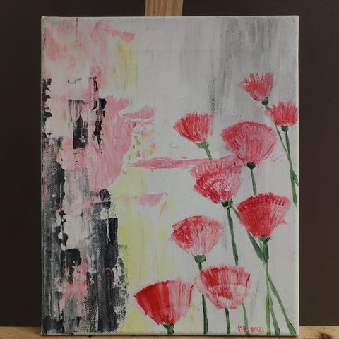 Maalaus kukka-aiheella mustavalkoinen kehys